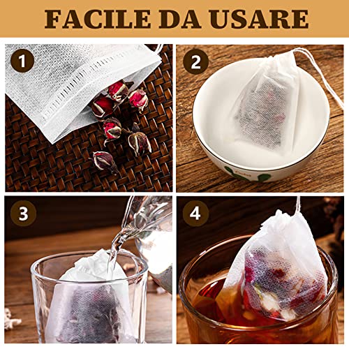 【Mantieni il Sapore Originale】 I nostri Sacchetti filtro per Tè con coulisse hanno una buona filtrabilità, che può impedire la caduta delle foglie di tè fini, filtrare i gambi del tè e i residui di tè, mantenere il sapore originale e mantenere pulito il tè preparato.