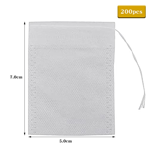 200 Pezzi Bustine da tè Filtro,Sacchetti Filtro per tè USA e Getta con Coulisse,per Tè Sfuso,Tisane,Erbe Aromatiche,Tè Profumati,Grani,Caffè,5*7 Cm