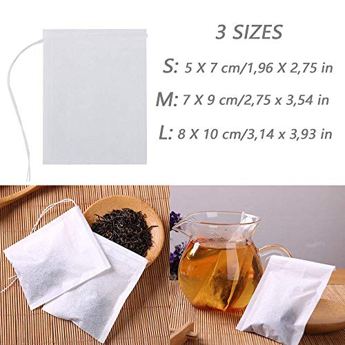 300 Pezzi Bustine da tè Filtro Sacchetti, Bustine Filtro per Il tè USA e Getta, Versatili in Tessuto per tè Spezie Erbe Grani Odori Medicine Bar 5 * 7 cm / 7 * 9 cm / 8 * 10 cm (Bianco)