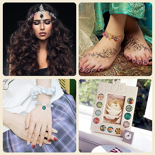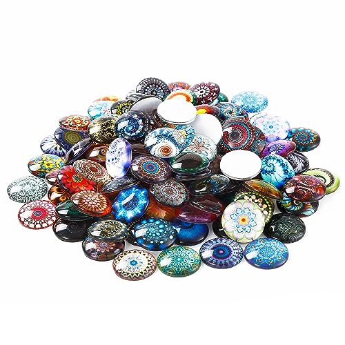 【120 Pezzi Cabochon in Vetro Stampato】Il set contiene 120 pezzi di cabochon in vetro stampato, pietre di vetro con un diametro di circa 25 mm, vari stili, aspetto raffinato, forma cabochon, la quantità è sufficiente per soddisfare le tue esigenze di decorazione quotidiana