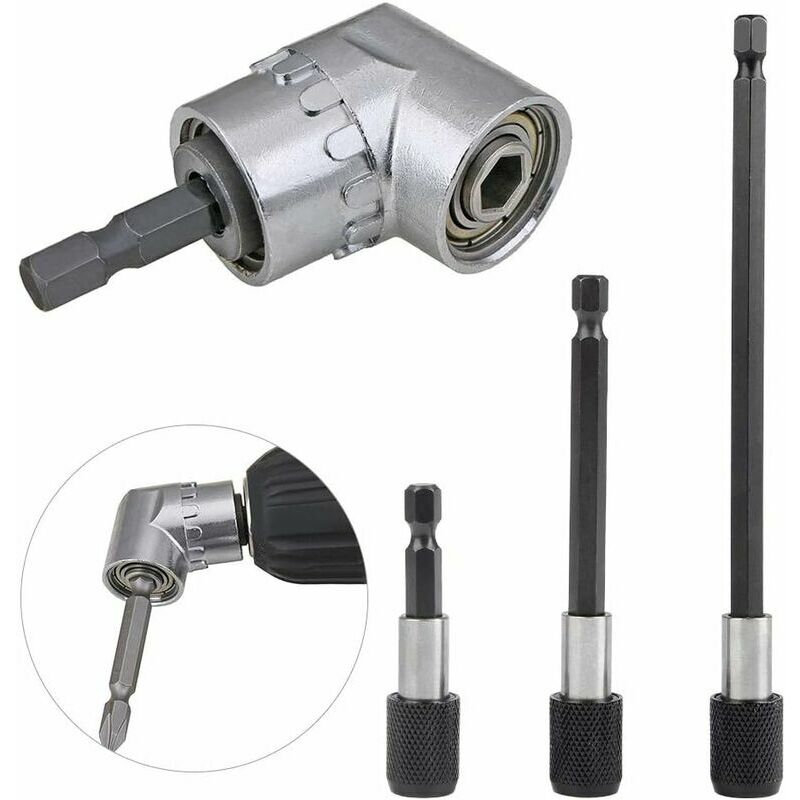 Cacciavite magnetico da 105 gradi: estensione dell'angolo di 105 gradi, dove viene utilizzato quando ha punti difficili da raggiungere, flangia del pollice regolabile a 360 gradi Mano è possibile collegare trapano e chiave manuale. Si applica a tutti i trapani elettrici e chiavi a tubo. Punte da trapano con codolo esagonale: adattatore per mandrino con estensione magnetica esagonale da 1/4 di pollice Portapunte per cacciavite con presa a sgancio rapido | 60mm/100mm/150mm di lunghezza, adatto per avvitatori elettrici, trapani pneumatici e altri per avvitatori elettrici, punta estesa. Facilità di montaggio e utilizzo: la testa funzionale è dotata di un dispositivo magnetico e di un dispositivo di bloccaggio in modo che la manica non cada. Magnete potente incorporato per una buona potenza di serraggio, accetta tutte le punte esagonali standard da 1/4". Materiale di alta qualità: il mini trapano da 105° è realizzato in acciaio legato e doppiamente temprato. La durezza extra fa arrugginire