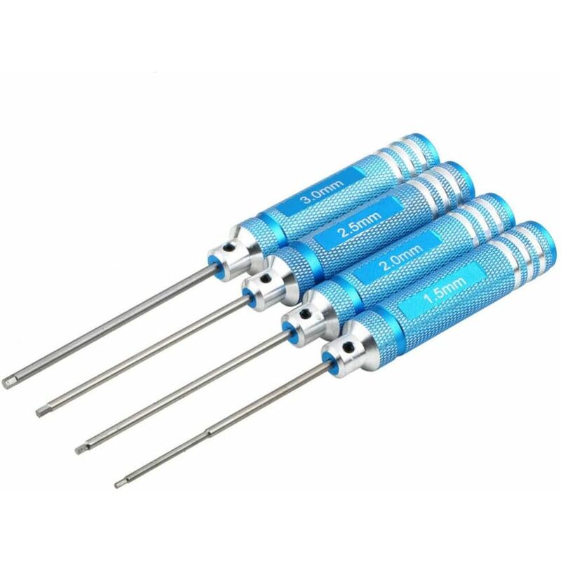 Design semplice e pratico, comodo da impugnare e facile da usare. Set di strumenti per cacciavite esagonale, utilizzato per smontare la vite esagonale in elicotteri, auto radiocomandate, barche radiocomandate, droni e qualsiasi altro luogo Ciascuno lunghezza totale: circa 195 mm. Manico (lunghezza * diametro): circa 90 * 18 mm. Cacciavite esagonale Ideale per rimuovere facilmente le viti esagonali in un elicottero RC o altrove. Set di cacciaviti esagonali 4 pezzi di diverse dimensioni della testa: 1,5 mm, 2,0 mm, 2,5 mm, 3,0 mm. Punta magnetica per l'allenamento Colore: principalmente blu. Materiale: lega di alluminio duro durevole e acciaio. Set di cacciaviti di precisione Descrizione Design semplice e pratico, comodo da impugnare e facile da usare. La dimensione della chiave è incisa su ogni maniglia per una facile identificazione Caratteristiche Colore: principalmente blu Materiale: lega di alluminio duro durevole e acciaio Taglie: 1,5 mm, 2,0 mm, 2,5 mm, 3,0 mm Pacchetto incluso
