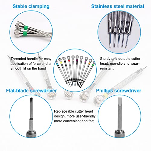[ Ampia applicazione ] - Con le diverse dimensioni di cacciaviti a croce e a taglio si possono allentare vite. Per la riparazione di orologi, la sostituzione di batterie dell'orologio e lo smontaggio di varie fibbie a vite in miniatura.