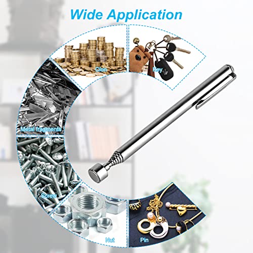 【Facile da Trasportare】 L'asta telescopica magnetica è leggera, peso: 26 g. L'estremità del manico è progettata con una clip per penna, che può essere riposta nella tasca dei vestiti. È comodo da riporre e trasportare quando si esce.