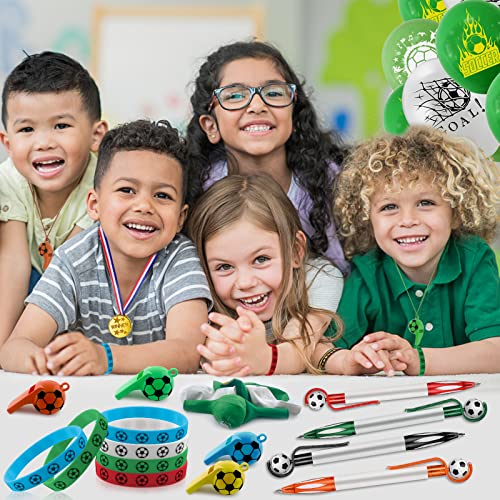 80 Pezzi Calcio Festa Compleanno Regalo Bambini, Gadget Calcio Accessori include Calcio Mongolfiera, Portachiavi, Braccialetto Fischietto Medaglie Tatuaggi Penna Sacchetti Regalo per Feste