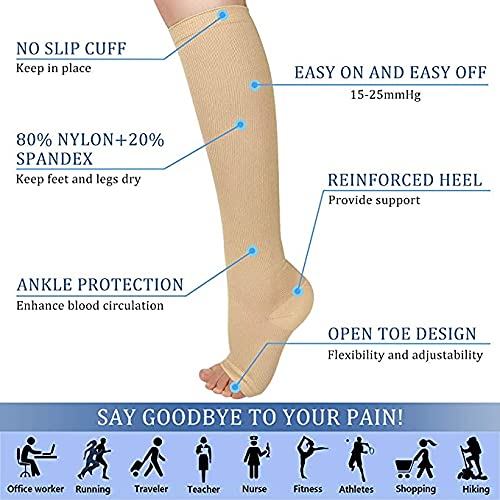2 Pezzi Calze a Compressione con Cerniera Punta Aperta per uomo/donna, Beige XXL
