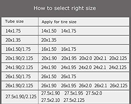 Il nostro tubo interno sarà ampiamente utilizzato in biciclette 26 pollici con larghezza di pneumatici di 1.9, 1.95, 2.0, 2.1 e 2.125 pollici. È possibile trovare la dimensione del tubo interno sul vecchio tubo interno, che dovrebbe essere 26x1.9/2125 pollici.