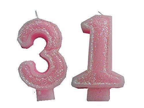2 pezzi candela di compleanno con " NUMERO 31 " per ragazza / donna colore lucido fucsia