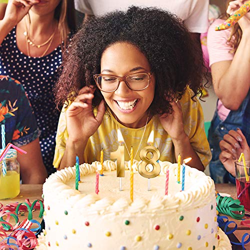 2 Pezzi di Candele di Numeri Glitter Oro Decorative per Torta di Compleanno Topper Candeline Numeriche Decorazione per Matrimonio Compleanno Anniversario Celebrazione Laurea, Numero 18