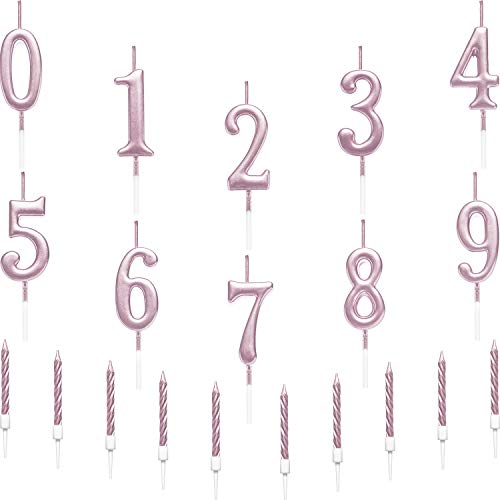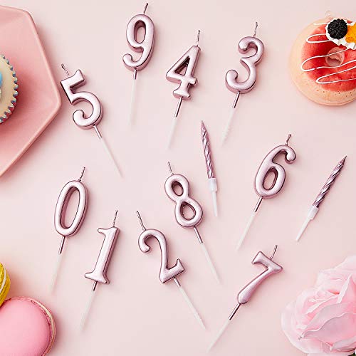 BBTO 10 Pezzi Candele a Spirale con Portacandele per Torte di Compleanno, Totale 20 Pezzi (Oro Rosa)