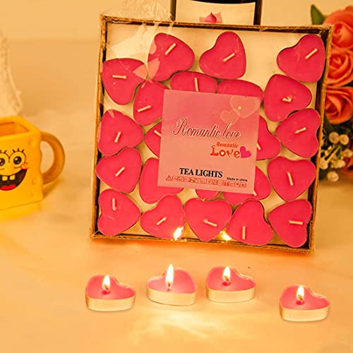 100 pezzi Candele San Valentino, Candele Rosse, Candele a Forma di Cuore, Tealight Amore Cuore Rosso, Decorazione Candela Anniversario di Matrimonio, San Valentino, Proposta di Matrimonio (Rosa)