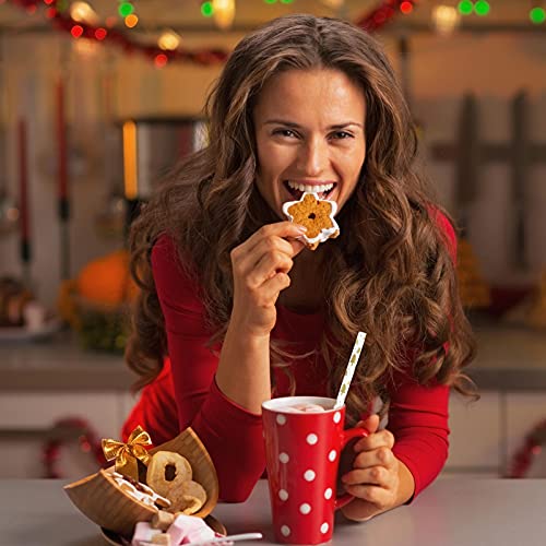 La lunghezza di ogni cannuccia è 19,7 cm/7,8 pollici e il diametro è 0,6 cm/0,23 pollici. La confezione include: 150 cannucce di carta natalizia, per un totale di 5 simpatici stili, 30 ciascuno.