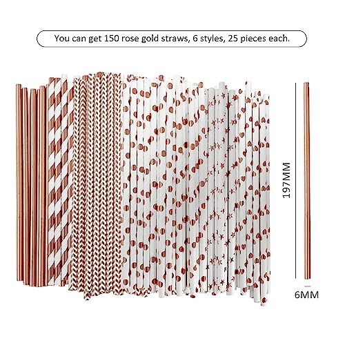 【Contenuto della confezione】 Riceverai 150 pezzi di cannucce di carta oro rosa, inclusi 6 stili, ogni stile ha 25 pezzi, motivi ricchi possono soddisfare le tue varie esigenze