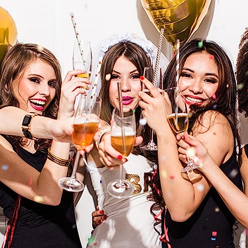 【Grande quantità】 Abbiamo una grande quantità di cannucce, 6 stili, tra cui tinta unita, strisce, onde, punti, cuori e cannucce di carta oro rosa a stella a cinque punte, 150 pezzi sono sufficienti per soddisfare le tue esigenze quotidiane.