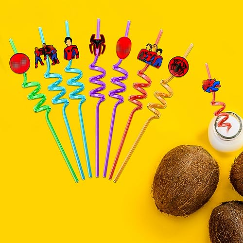 8 Pezzi Cannucce di Plastica Riutilizzabili,Cannucce Colorate Cartoni Animati,Cannucce Ricurve,Cannucce ricce in plastica dura per feste di compleanno per bambini,decorazioni per feste di famiglia