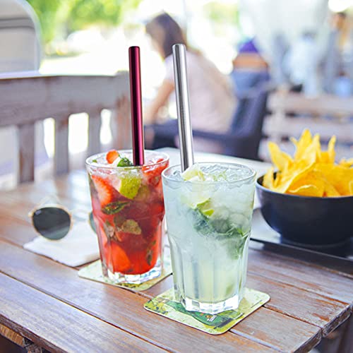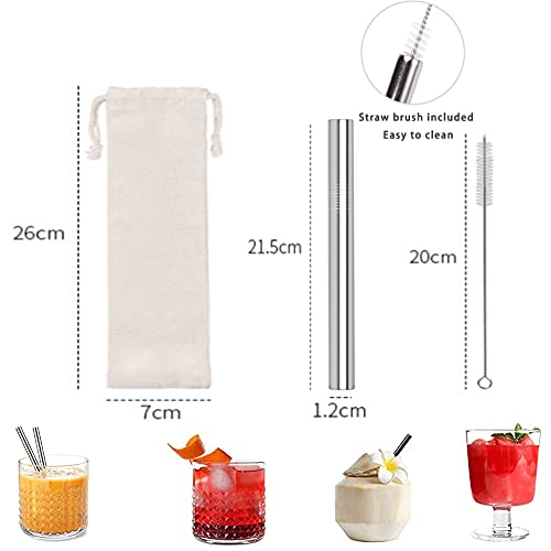 5 Pezzi Cannuccia Metallo,Cannucce in Acciaio Inox,Cannucce Extra Larghe,Dritte Metallo Cannuccia,Cannuccia,con 2 Spazzole di Pulizia,per Bicchieri da Cocktail,Succo di Frutta Frappèe Frullati