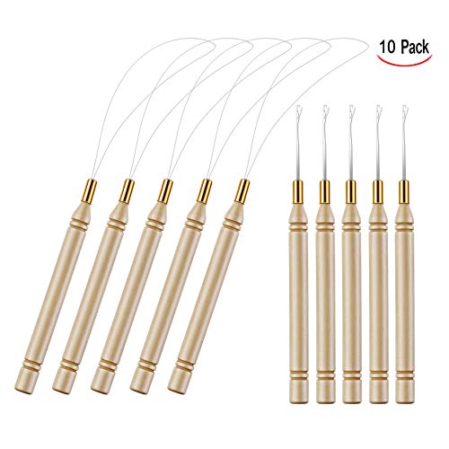 XLKJ 10 Pezzi Ago per Capelli,Manico in Legno All'uncinetto Tirando Gancio Strumento per i Capelli