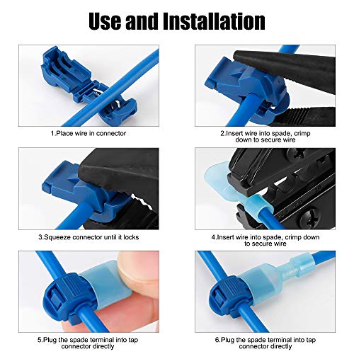 Sicuro e veloce: Design stampato con isolamento di sicurezza, questi connettori elettrici T-Tap auto-spellanti consentono un inserimento rapido, facile e affidabile dei cavi esistenti.