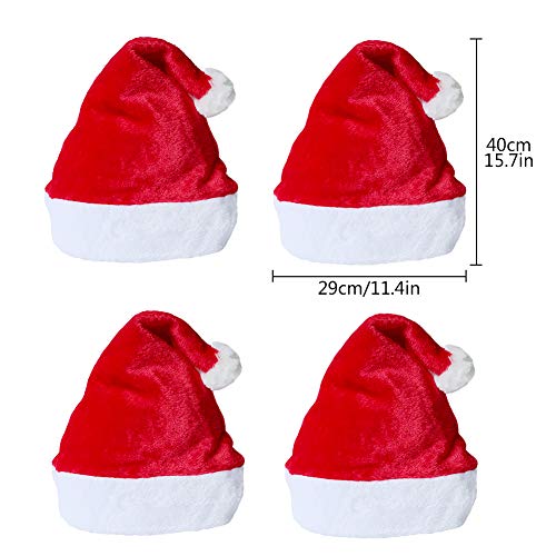 4 pezzi Cappelli di Babbo Natale per adulti Cappello di Natale Cappello di peluche invernale di velluto rosso Cappello di Babbo Natale grande con fodera morbida Cappelli di Natale unisex costume