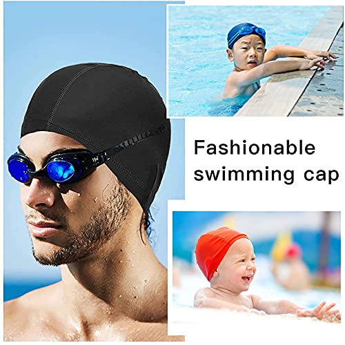 3 Pezzi Cappelli da Nuoto Tinta unita Cappello da Nuoto in Tessuto Poliestere Cappello Da Bagno Unisex Essere Applicabile Cappello Protezione Antiscivolo Orecchie per Piscina(Nero, Rosso, Blu Reale)