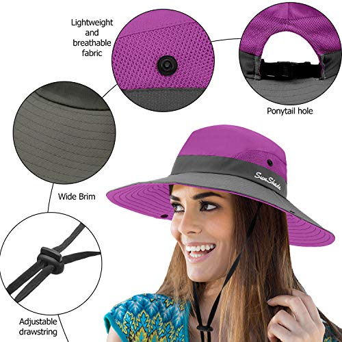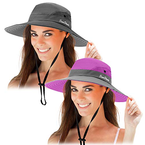 2 Pezzi Cappello di Protezione Solare Cappello da Sole a Tesa Larga a Rete Pieghevole Cappello Estivo all'Aperto da Spiaggia Pesca e Escursionismo 56-58 cm (Viola e Grigio Puro)