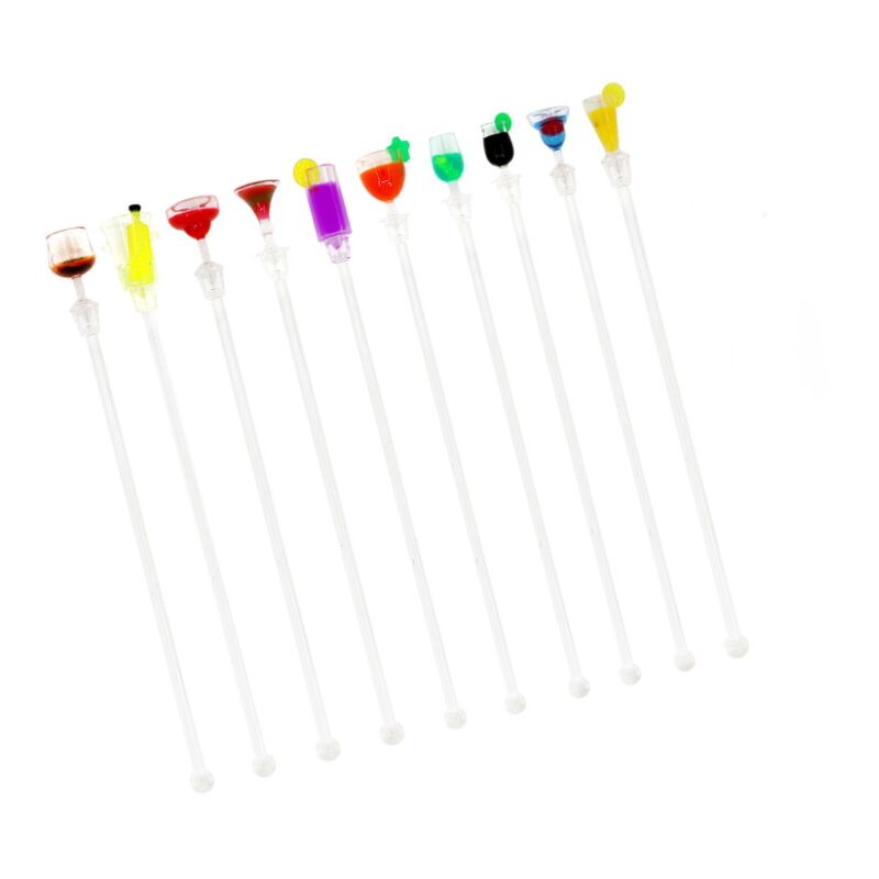 Perfetto utilizzato in ristoranti, bar, caffè e altre occasioni. ideale per l'uso quotidiano a casa. Ideale per cocktail, succhi di frutta e altro ancora. Ognuno è sormontato da un colorato accessorio bar in miniatura. Costruzione in acrilico resistente per un uso duraturo. Lunghezza: 23,5 cm / 9,2 pollici Pacchetto che include: 10 mixer per bevande da cocktail