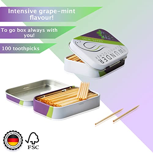 Gli stuzzicadenti aromatizzati di Wunder ti offrono una sferzata di freschezza unica e un gusto naturale in bocca in ogni situazione. Che tu sia in giro o al lavoro, i nostri stuzzicadenti garantiscono una freschezza naturale dell'alito. Gli stuzzicadenti di Wunder sono realizzati con aromi alimentari speciali. Lo speciale processo di lavorazione e stagionatura dona ai nostri stuzzicadenti un aroma inconfondibile.
