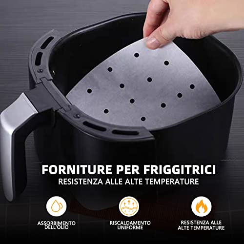 【Materiale eccellente】: Ogni prodotto contiene 200 fogli di carta usa e getta per friggitrice ad aria, utilizzando carta pergamena alimentare, impermeabile, resistente all'olio, antiaderente, sana al 100% e resistente al calore, in grado di resistere a temperature fino a 250 °C Temperatura elevata senza alterare il gusto del cibo.Diametro di 21,5 cm, dimensioni perfette per friggitrici ad aria da 4 litri a 5,5 litri.