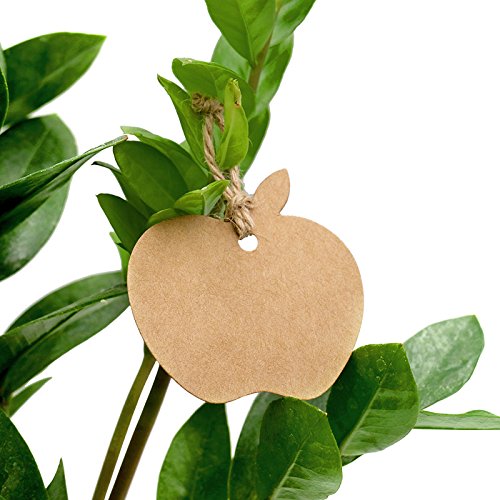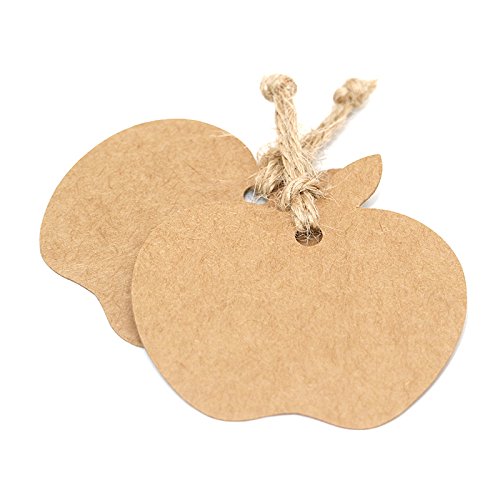 100 pezzi carta kraft etichette regalo a forma di mela Craft Hang Tag con Spago di iuta 30 metri di lunghezza per matrimonio favore Tag e etichette, prezzi Brown