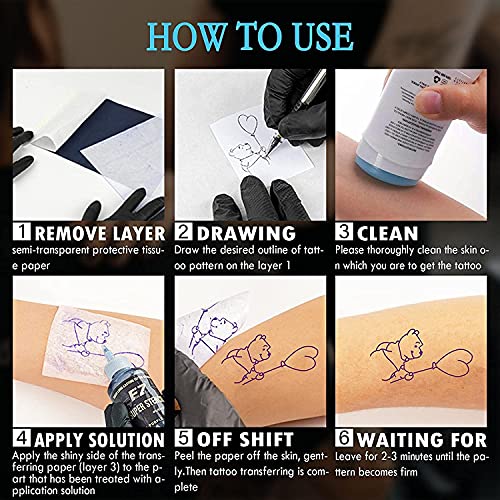 Ampiamente applicabile: adatto per professionisti, principianti, tatuatori, artisti. Serve per trasferire motivi di tatuaggi dalla carta alla pelle. Carta transfer professionale per tatuaggi.