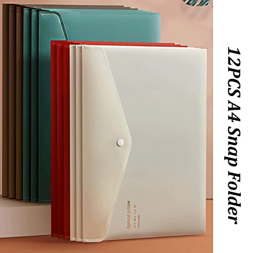 12 Pezzi Cartelle a Busta Portadocumenti, Cartelle Portadocumenti in Plastica, Durevole e Impermeabile Grande per L'ufficio, Casa, Organizzazione della Scuola (Nero + Bianco + Rosso + Verde Scuro)