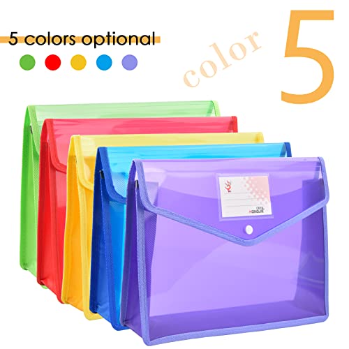5 Pezzi Cartelle Portadocumenti A4, Busta Cartelle con Bottone 3D, Borsa Portadocumenti in Plastica per Organizzare File Ufficio e Scuola, 5 Colori