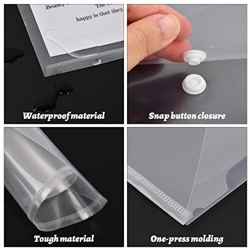 20 Pezzi Cartelline Portadocumenti A4, Impermeabili Cartelle Plastica A4 con Bottone a Pressione, Trasparente Buste con Bottone Cartelle Documenti per Scuola Ufficio, 4 Colori (Trasparente)