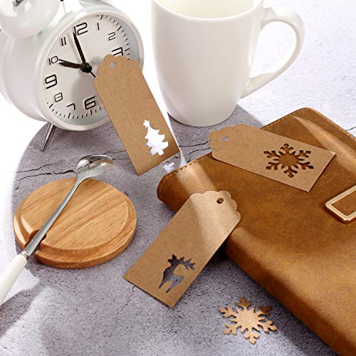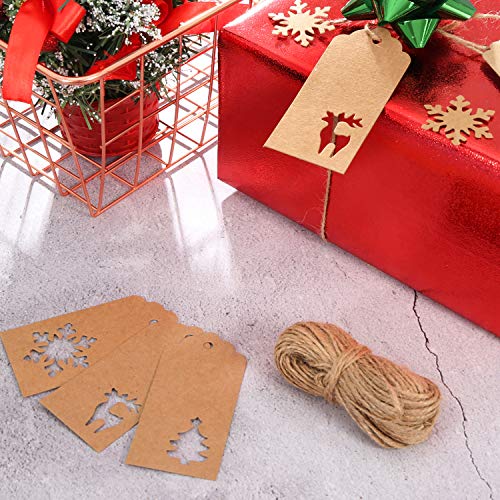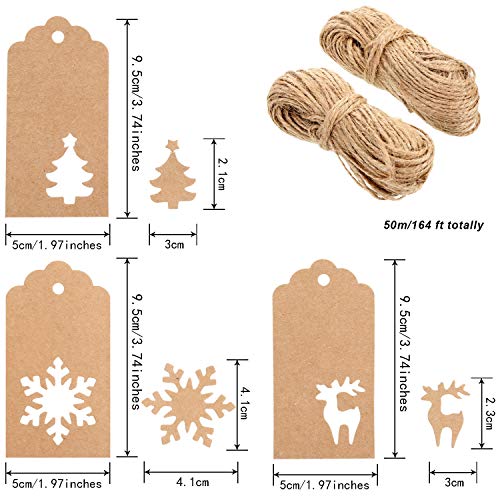210 Pezzi Cartellino Rosso Regalo Etichette da Appendere Cartellino Albero di Natale Renna Fiocco di Neve Forma da Appendere Etichette con 164 Piedi Spaghi per Natale Matrimonio Compleanno (Marrone)