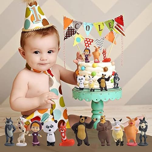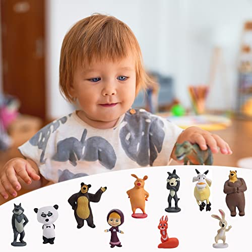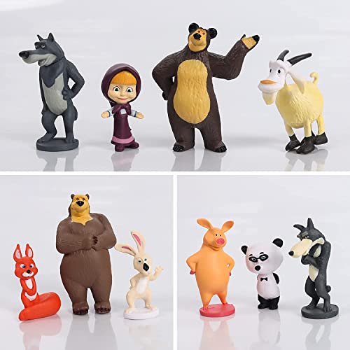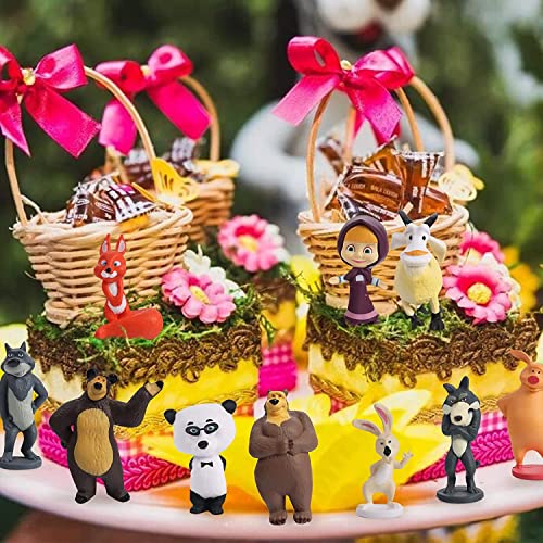 10 Pezzi Cartoon di Compleanno Modello, Mini Figurine Masha e Orso Cake Topper Mini Figurine, Figure per Torte Decorazioni, Da utilizzare per Feste per Bambini e Bambine, Feste per Bambini