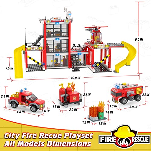 898 Pezzi City Fire Caserma Dei Pompieri Set di Blocchi da Costruzione, Camion dei Pompieri, Elicottero, Veicolo, Giocattolo Creativo di Salvataggio dei Pompieri, Regalo per Bambini 6-12