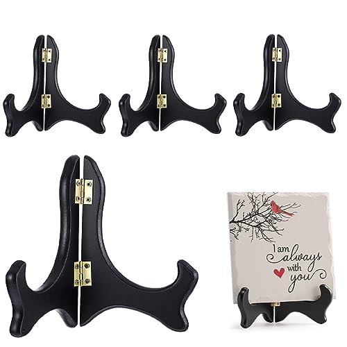 KQNM 4 Pezzi Cavalletto Supporto in Legno per Piatti (Nero, 4 Pollici), Cornice in Legno Nero Supporti Decorativi per Esporre Foto, Libri di Cucina, Casa, Compleanno, Feste, Cavalletto da Tavolo