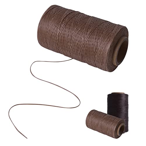 2 Pezzi Filo Cerato, 260 m Cordoncino Cerato, Filo da Cucito per Cuoio, 1 mm Filo Cerato Piatto, Corda Cerata per Collane Bracciali Borse, Lavorazione del Cuoio (marrone + marrone caffè)