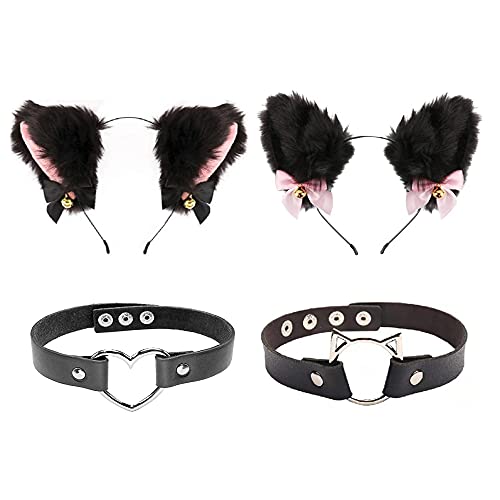2 Pezzi Cerchietto con Orecchio di Gatto, Cosplay Orecchie di Gatto, Peluche Orecchie da Gatto, Orecchio di Gatto con Campane e Fiocco, per Cosplay, Travestimenti, Feste (Donna + Ragazza)