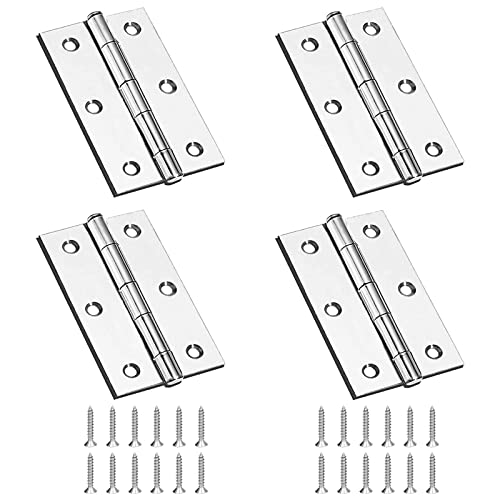 4 Pezzi Cerniere Acciaio Inox,Cerniera a Vite Inox,44mm*31.3mm Cerniere per Legno,Non Facilmente Deformabile,per Porte di Camere,Porte di Cucine,Ante di Armadi,Porte di Bagni(Argento)