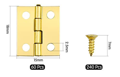60 Pezzi Mini Cerniere Piccole Cerniere Piccole Pieghevole in Metallo Cerniera Connettori Cerniere a Testa con 240 Viti per Armadietti, Cassettiere, Porte, Cassettiere, Cerniere - 18 x 15mm