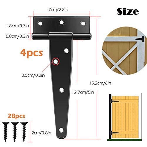 4 Pezzi Nero Cerniere a T per Porte in Legno Cardini per Porte, Cerniera Porta Esterna, Cerniere per Porte da Fienile con 28 Viti, per Portoni e Porte di Fienili(5 Polici)