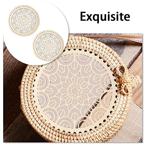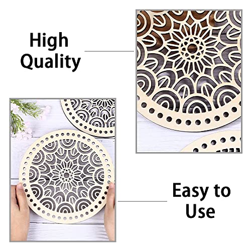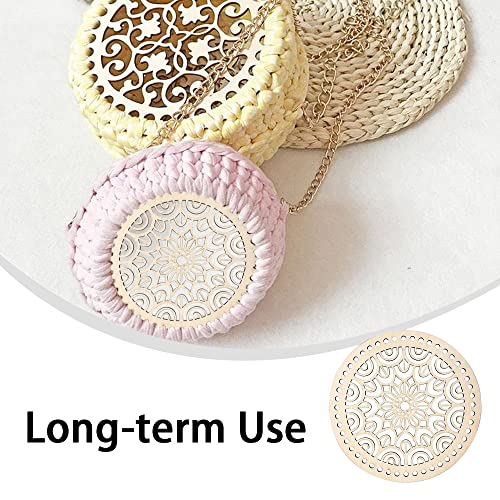 NA 2 pezzi di cestini in legno naturale a forma di tondo cava cesto all'uncinetto basi in legno motivo floreale cesto all'uncinetto basi in legno per borsa fai da te fatta a mano