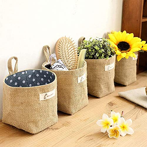 4 Pezzi Cestini Portaoggetti, Borsa Portaoggetti in Cotone e Lino, Cestino Pieghevole, Borsa Portaoggetti da Comodino Montata a Parete, per Imballare Cosmetici, Chiavi, Giocattoli e Piccoli Oggetti