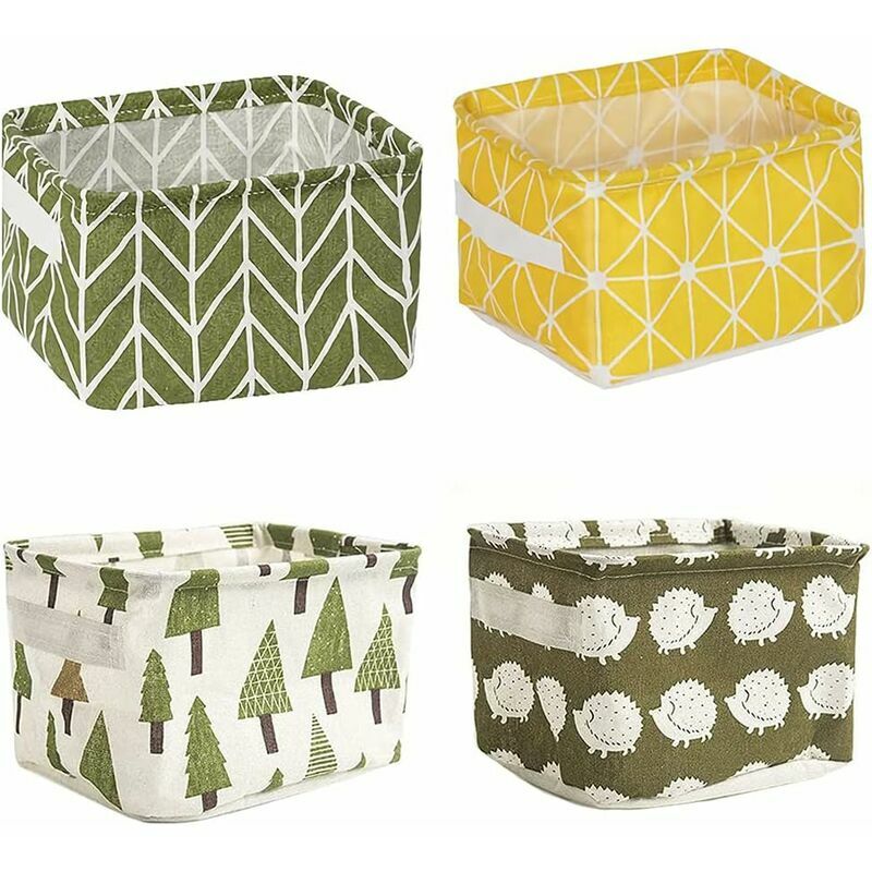 Lino Colore: come da foto Dimensioni: 20 x 16 x 13 cm / 7,87 x 6,3 x 5,12 pollici Quantità: 4 pezzi La confezione include: 4 mini cestini quadrati Note: 1. A causa della differenza di impostazione