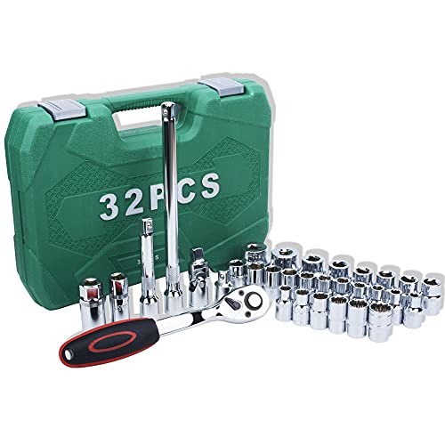 Il pacchetto include: chiavi a bussola da 32 pezzi, scatola a cricchetto attrezzata, ci sforziamo per l'eccellenza, quindi il nostro servizio clienti professionale garantisce la tua soddisfazione Il nostro prodotto è protetto dal nostro produttore con una garanzia di qualità.