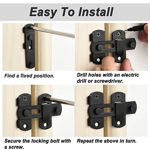 Facile da Installare: La serratura della porta è facile da installare. Può essere installato sul lato destro o sinistro. Prima dell'installazione, praticare i fori con un trapano o un cacciavite, quindi fissare il bullone della serratura con le viti, in modo che anche gli adolescenti o gli anziani possano facilmente azionare la serratura della porta da soli. Per l'utilizzo, è sufficiente far scorrere il braccio oscillante nel tappo quadrato per fissarlo.
