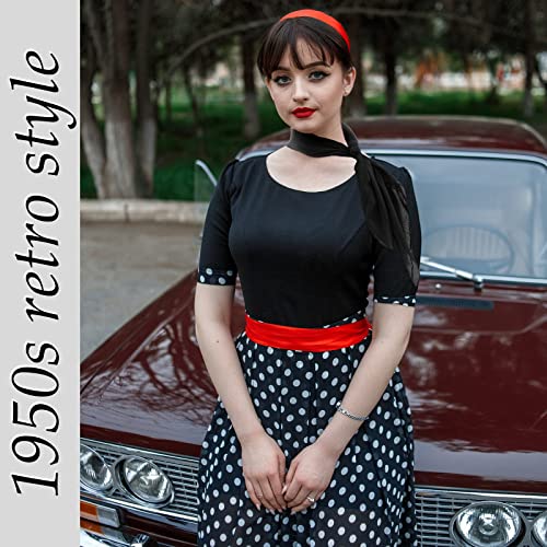 2 Pezzi Chiffon Collo Sciarpa Pianura Nero Capelli Sciarpa Pois Piazza Delle Donne Sciarpa 50s Peso Leggero Bandana per Ragazze Signore, Nero, Etichettalia unica