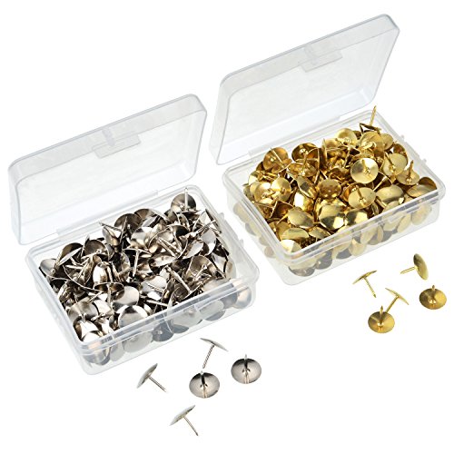 400 Pezzi Chiodi a Testa Puntine da Disegno Puntine per L'Ufficio o Fai da Te, 10 mm Testa, Argento e Ottone Tono