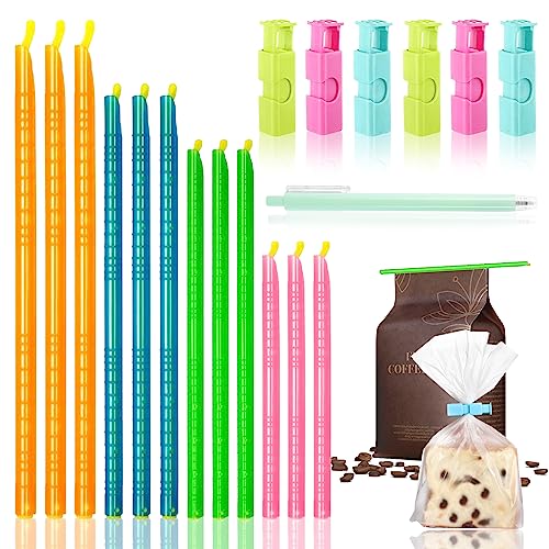 ✅ Set di clip per sigillare i sacchetti: le nostre penne sigillanti sono disponibili in 4 diversi colori e dimensioni, tra cui 3 penne sigillanti per sacchetti di plastica rosa da 12 cm, 3 verdi da 19 cm, 3 blu da 22,5 cm e 3 arancioni da 28,5 cm e 6 clip per sacchetti per il pane.